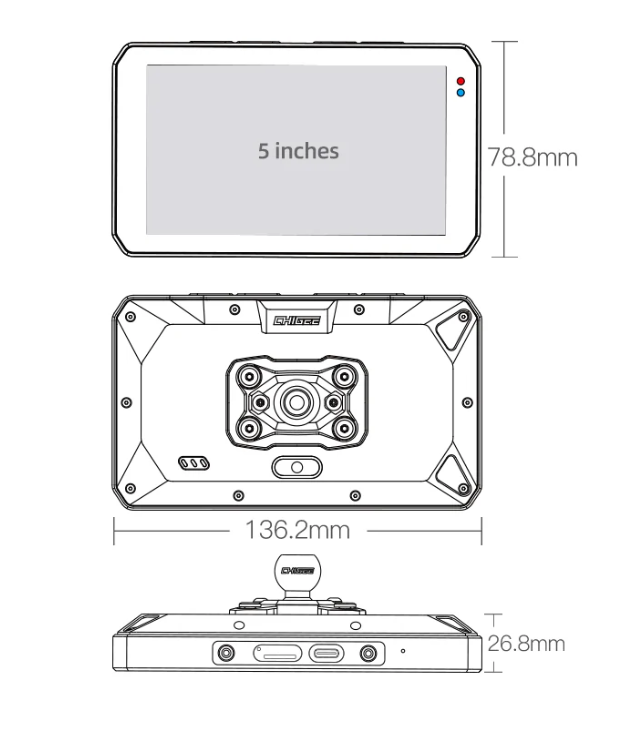 • 5 inç 720P Yüksek Çözünürlüklü Ekran: 1000 nit parlaklık sayesinde güneş ışığında bile net görüntü.