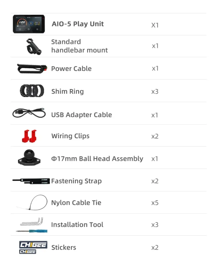 AIO-5 ve AIO-6 Modelleri ile uyumlu 12-16 mm genişliğindeki barlara doğrudan montaj imkanı sağlar. Tüm Chigee akıllı sürüş asistanları ile uyumludur.